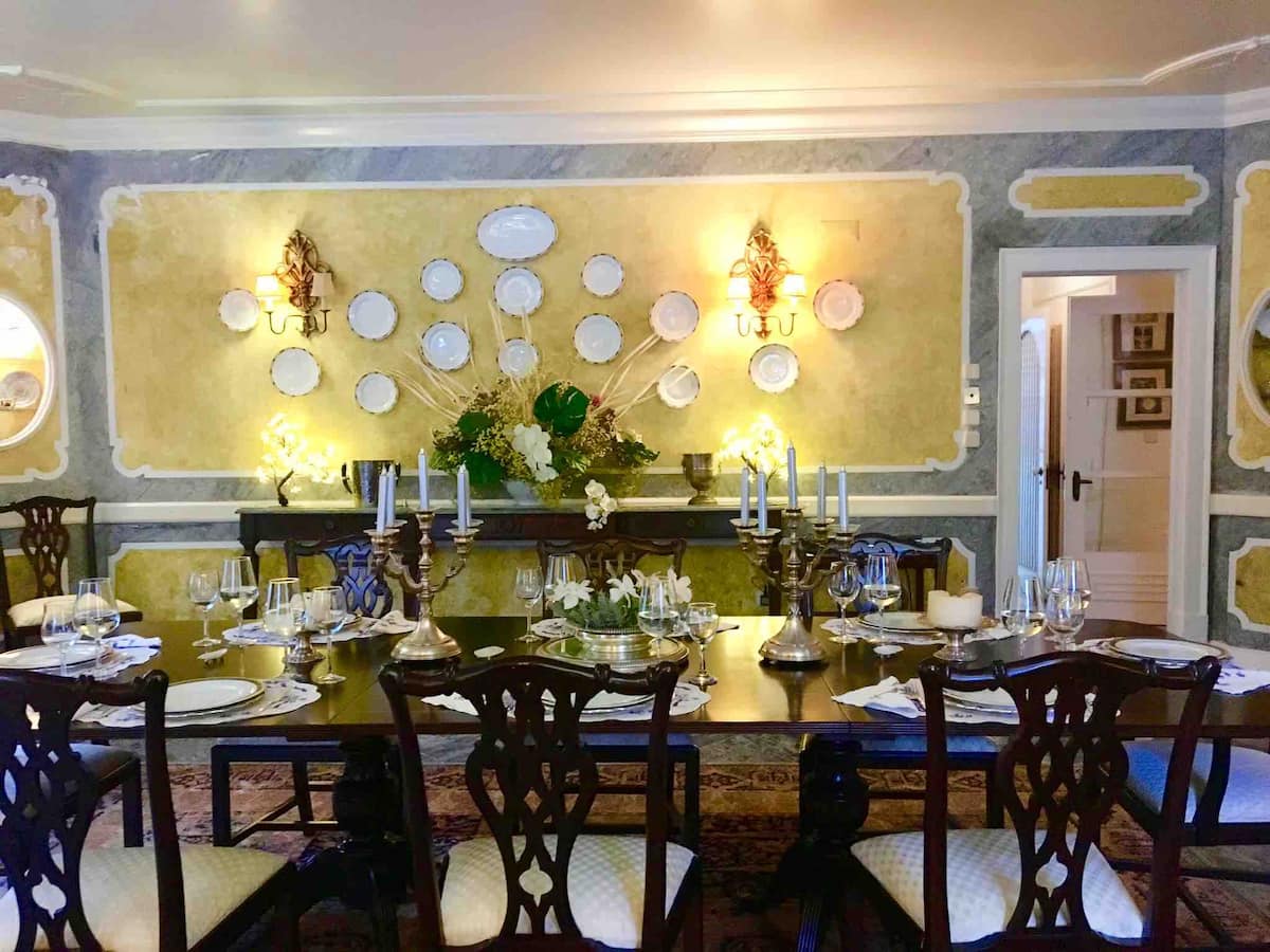 As mentioned, this family managed property is ideally located. This is not your high-tech kind of house but it’s the authentic, real-deal and sophisticated kind of property. The internet works perfect for business guests and so does the garden for those who are looking for some pool fun. The house also features a massive formal living room overlooking the pool, a media room and a dining area for for twelve guests. If you want to enjoy Portugal’s amazing weather you will also find two dinning outside table with all its cutlery, place mats and everything you need for a refined yet cool dinner.