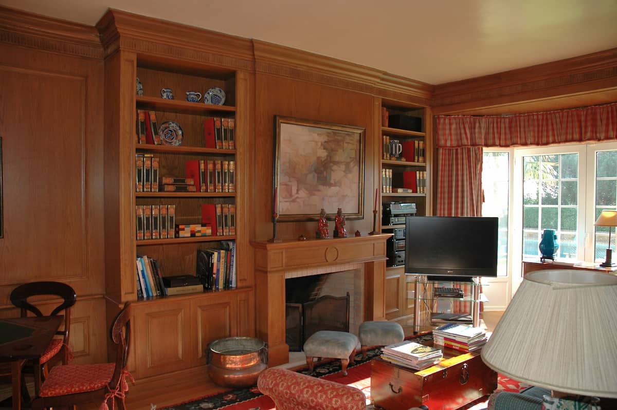 This is a beautiful property, located in the privileged area of Quinta da Marinha, just by the Golf course. The whole property has a 2500m2 area, including a big garden and a very large swimming pool. The main house (480 m2) has on the ground floor a suite (big bedroom with en suite bathroom and walking closet), a living room, a dinning room, an office and tv room, a big kitchen with a breakfast area with view over the pine trees. There is a laundry room, storage room and a toilet. On the second floor there are 3 bedrooms, one with 2 single beds, a second bedroom with a double bed and a third bedroom with a bunk bed for 3 guests. All the bedrooms have big closets and there are 2 complete bathrooms on this floor.