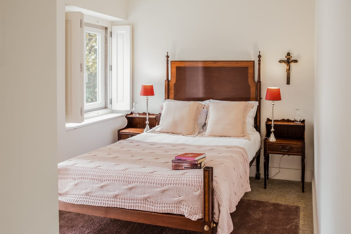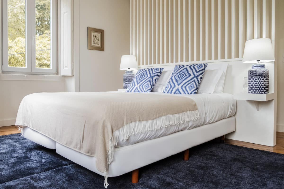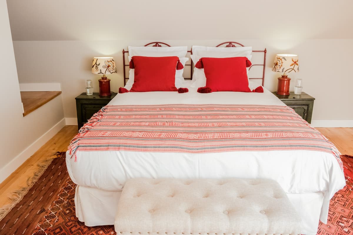 Bedroom 1 – Castelo: Queen size bed, Ensuite bathroom with stand-alone rain shower, Bidet, Television, Lounge area, Air conditioning, Heating, Private balcony