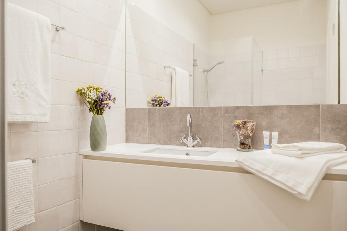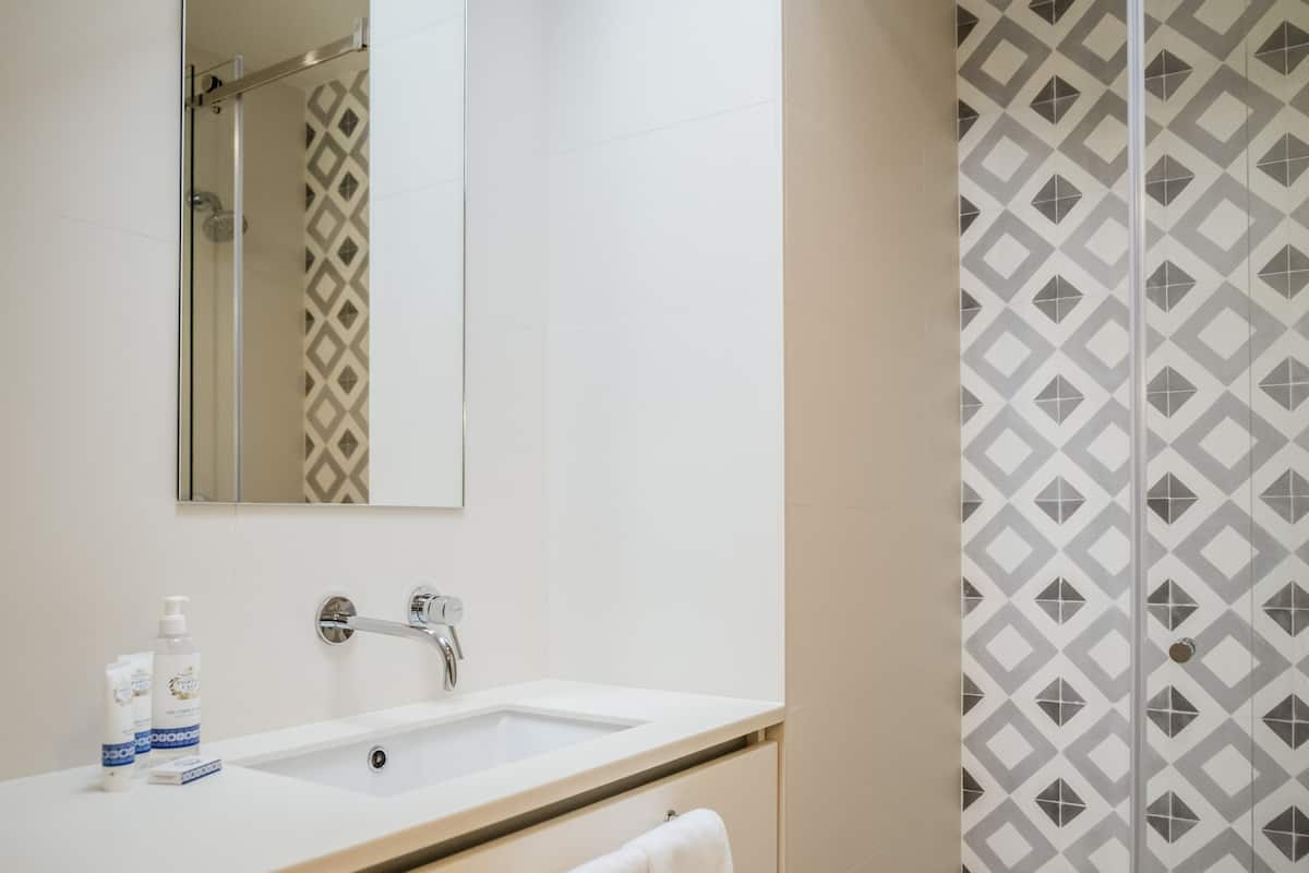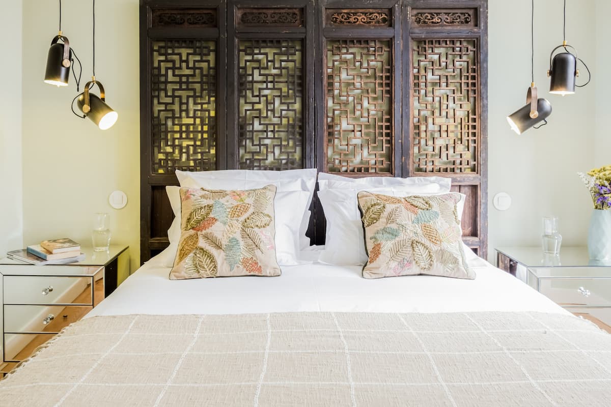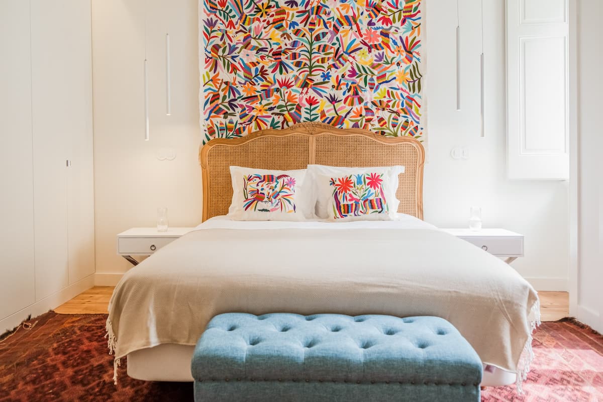 Bedroom 1 – Castelo: Queen size bed, Ensuite bathroom with stand-alone rain shower, Bidet, Television, Lounge area, Air conditioning, Heating, Private balcony